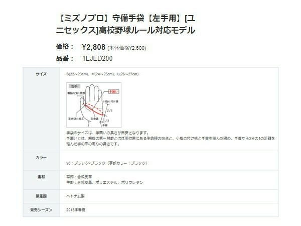 【15%OFF】【2018年春夏モデル】 ミズノ:ミズノプロ 守備手袋(左手用) 高校野球ルール対応モデル【MIZUNO 野球 手袋 片手】