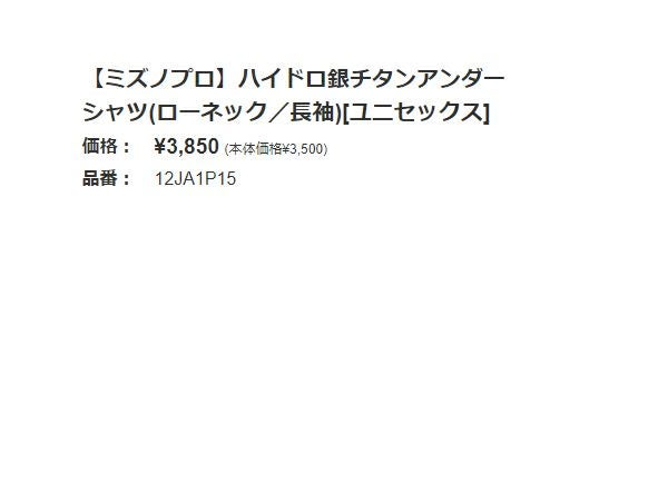 【30%OFF】 ミズノ MIZUNO ミズノプロ ハイドロ銀チタンアンダーシャツ(ローネック/長袖) 野球 インナー アンダーシャツ 12JA1P1509 アウトレット セール