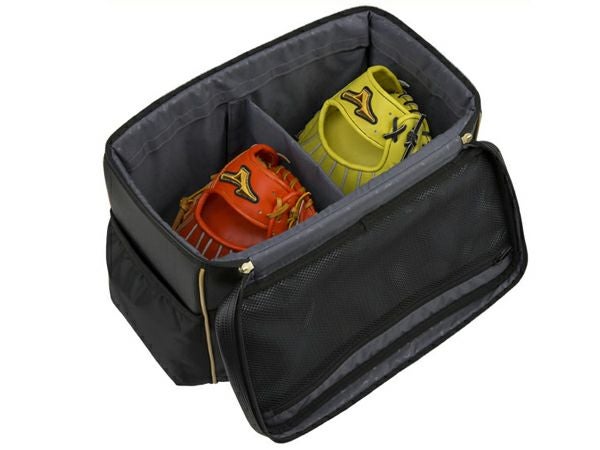 中仕切りを畳むことにより、グラブ・ミットを3個まで収納可。