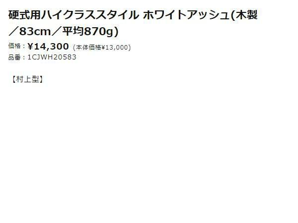 【10%OFF】野球 硬式 バット ミズノ MIZUNO ハイクラススタイル ホワイトアッシュ 硬式用木製バット 村上型 一般 野球 硬式 バット 1CJWH20583
