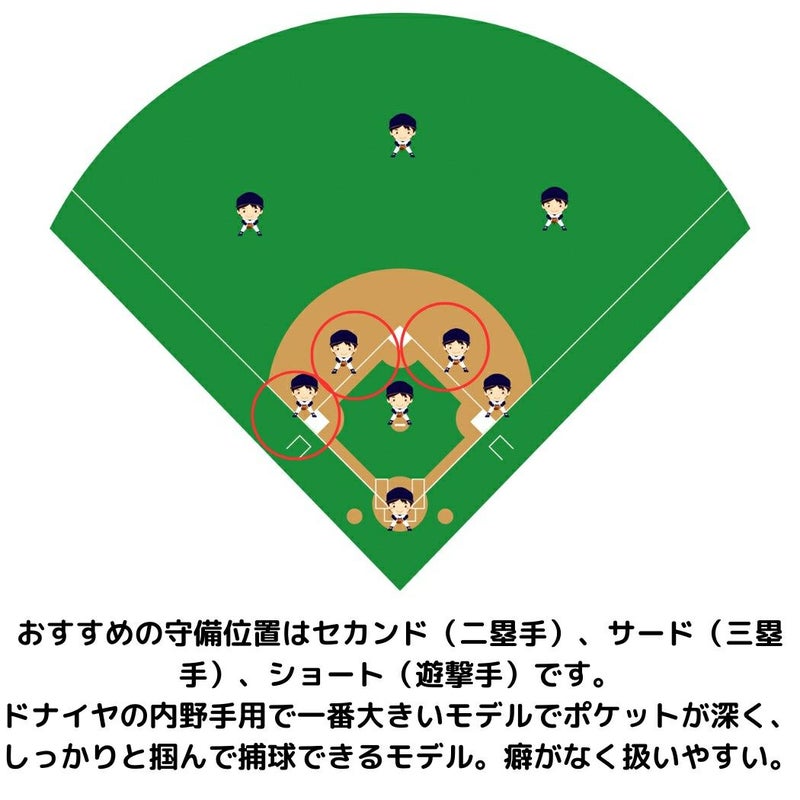 ドナイヤの内野手用で一番大きいモデルでポケットが深く、しっかりと掴んで捕球できるモデル。