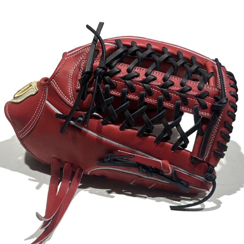 2本のハミダシでボールがグラブのどこの当たってもポケットに収まりやすく、指先が打球に負けない設計。