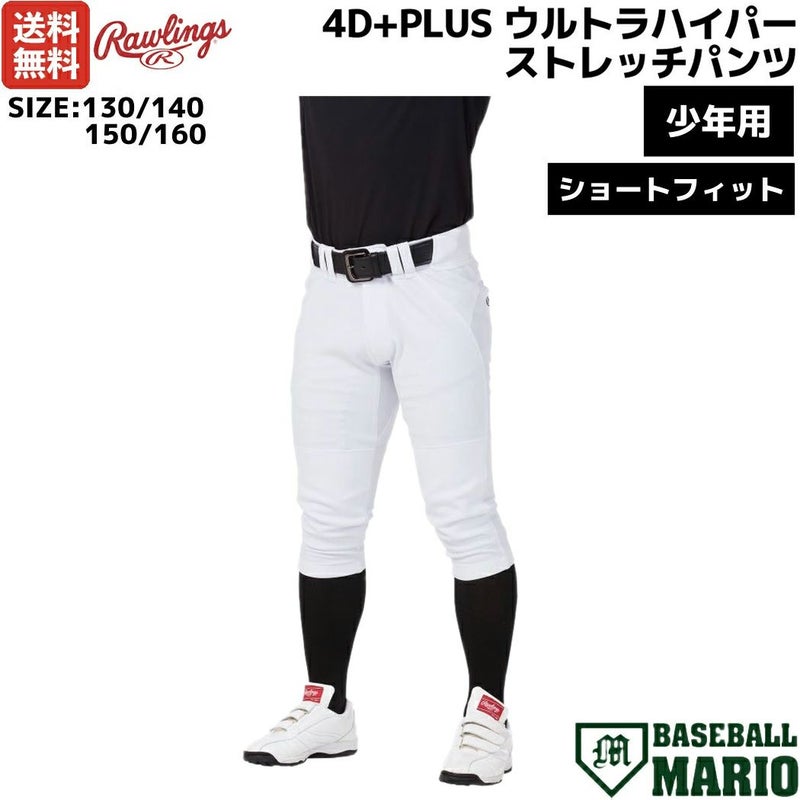 【41%OFF】 ローリングス Rawlings 少年用 ジュニア用 4D+PLUS ウルトラハイパーストレッチパンツ ショートフィット 野球 練習着 ユニフォームパンツ ホワイト 白 マークあり ひざ2重加工 少年野球 学童 スポ少 APP12S01J アウトレット セール