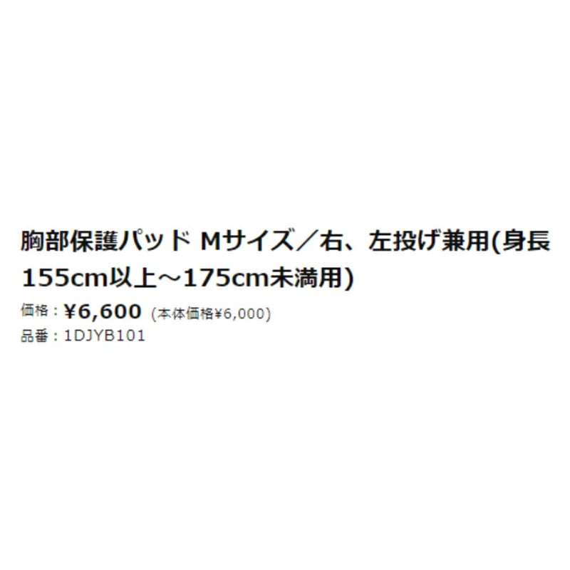 6. ミズノ MIZUNO 胸部保護パッド Mサイズ 右投げ 左投げ 兼用 身長155~175cm未満用 一般 ジュニア SGマーク入り ブラック 硬式 軟式 ソフトボール兼用 野球 ソフトボール 防具 けが予防 少年野球 中学野球 高校野球 1DJYB10109