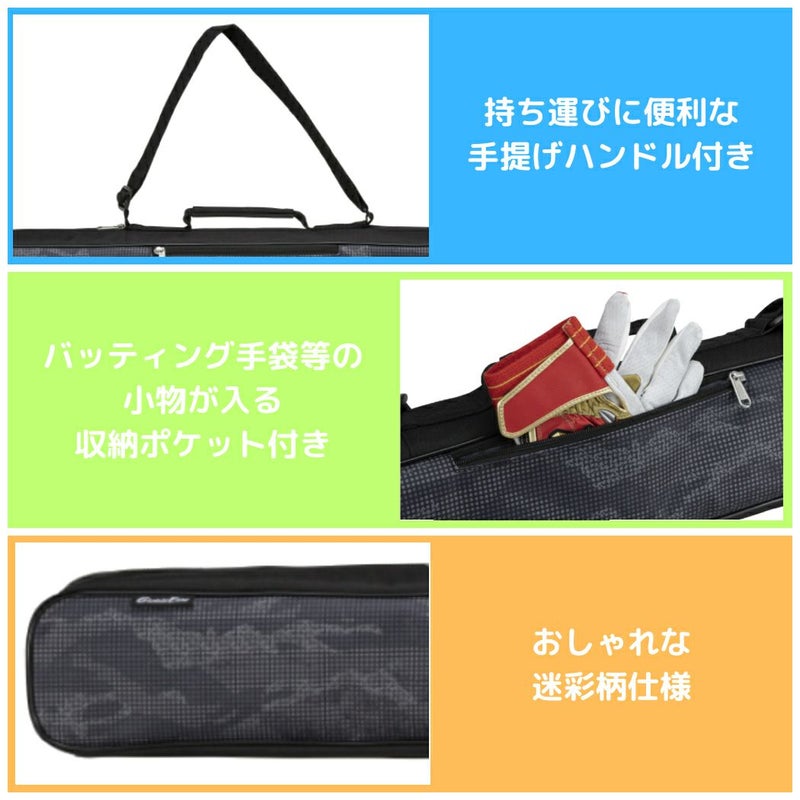 バット2本の収納に加え、小物類を仕分けるポケットが付いたバットケース。