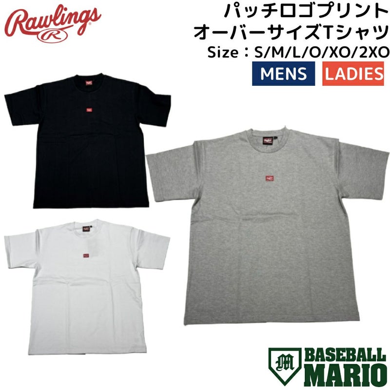 野球 トレーニング シャツ ローリングス Rawlings パッチロゴプリントオーバーサイズTシャツ 半袖 クルーネック 一般 メンズ レディース ユニセックス ワンポイント プリント 野球 トレーニング シャツ ビッグサイズ シンプル AST14S08