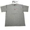 胸部に赤いパッチロゴ、背中部にもロゴがプリントされた半袖オーバーサイズTシャツ。