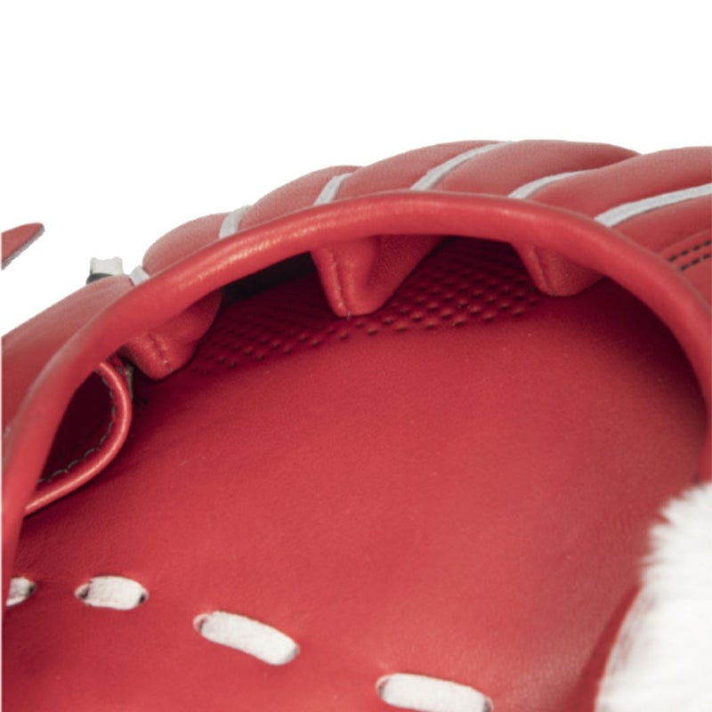 ●平裏指先型押し加工:型押し加工することで指先の食いつきが向上。中指・薬指部に配置。