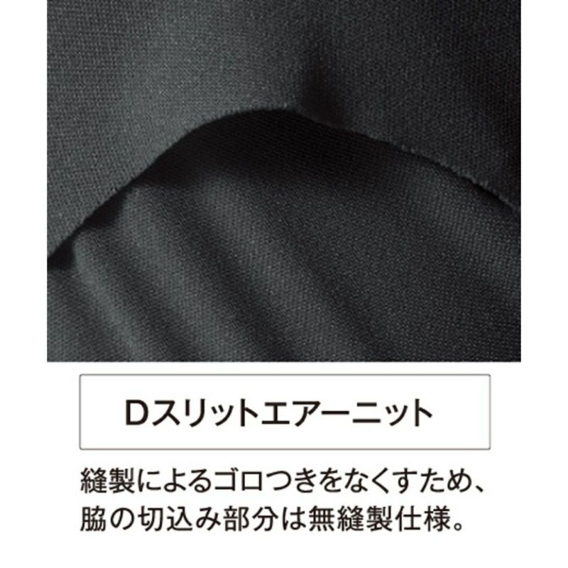 また、背中部分は肩甲骨を避ける縫製で肩まわりの動きやすさを実現。