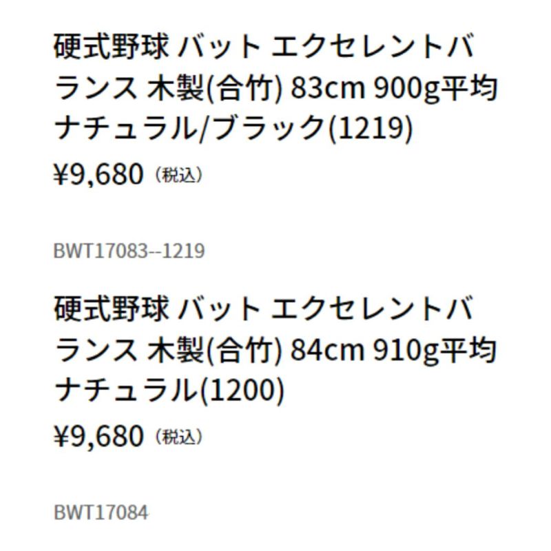 【10%OFF】野球 硬式 バット ゼット ZETT エクセレントバランス 硬式用竹バット 一般 83cm/900g平均 84cm/910g平均 合竹 ブラック ナチュラル 野球 硬式 バット 竹製 練習 BWT17083 BWT17084