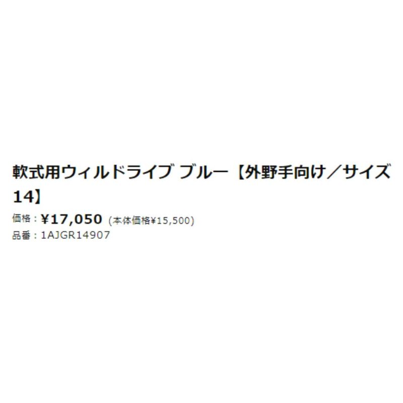 【10%OFF】野球 軟式 グローブ ミズノ MIZUNO ウィルドライブブルー WILLDRIVE BLUE 軟式用グラブ 外野手向け サイズ14 一般 野球 軟式 グローブ 学生 草野球 1AJGR14907