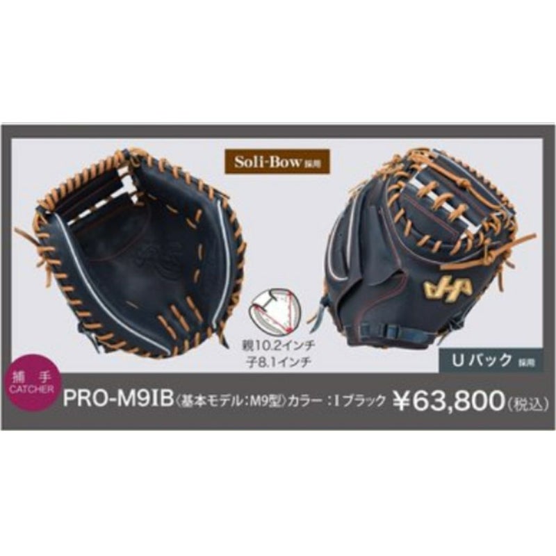 【10%OFF】野球 硬式 グローブ ハタケヤマ HATAKEYAMA 【専用グラブ袋付き】40周年記念硬式モデル 硬式用キャッチャーミット 捕手用 M9型 一般 Iブラック Uバック採用 2025年モデル 限定 野球 硬式 グローブ 高校野球 大学 社会人 PRO-M9IB