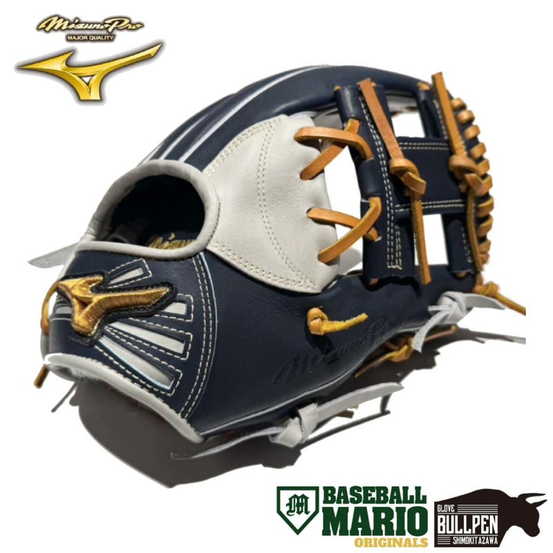 野球 軟式 グローブ ミズノ MIZUNO MizunoPro ミズノプロ 軟式用グラブ 内野手用 坂本型 マリオオリジナル サイズ9 一般 グレー×Dブルー 野球 軟式 グローブ 坂本モデル 坂本勇人 学生 草野球 マリオリ ベースボールマリオ 1AJGR82350MOG