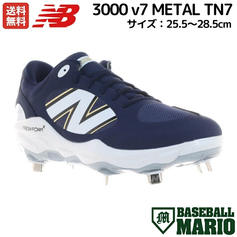 7. ニューバランス NEW BALANCE 3000 v7 METAL 金具スパイク 一般 FRESH FOAM X ネイビー 樹脂底 野球 スパイク シューズ 固定式 埋め込み式 ベースボールマリオ L3000TN72E アウトレット セール