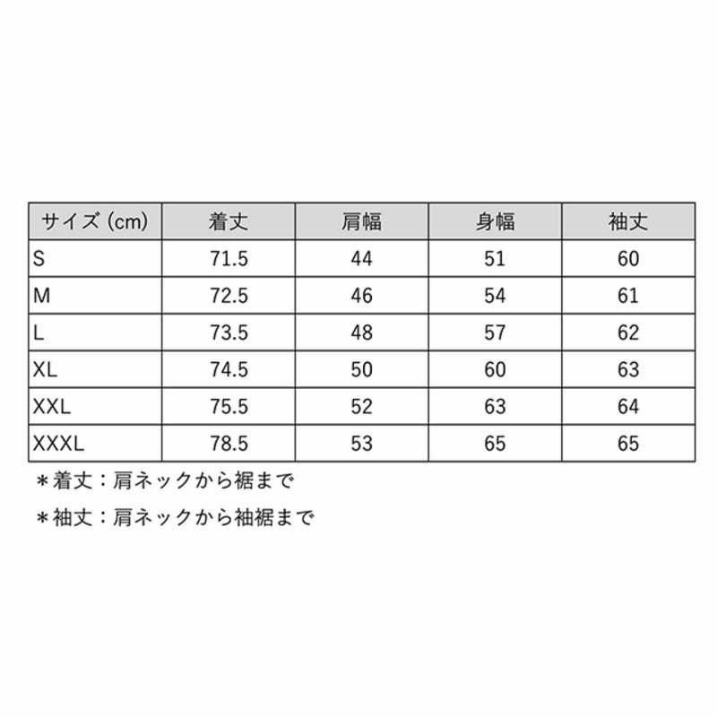 XL着丈:74.5cm 肩幅:50cm 身幅:60cm 袖丈:63cm