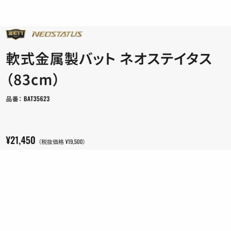 7. ゼット ZETT NEOSTATUS ネオステイタス 少年軟式用金属製バット ジュニア ベースボールマリオ 野球 軟式 バット 小学生 中学生 アルミ BAT35623 BAT35624