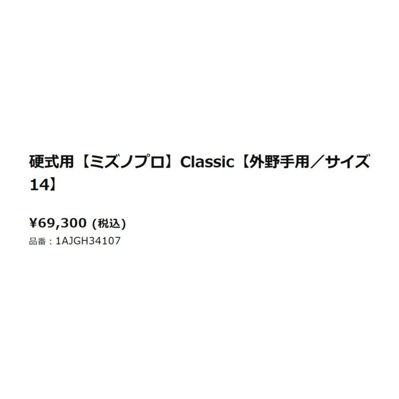 野球 硬式 グローブ ミズノ MIZUNO 専用グラブ袋付き MizunoPro Classic 硬式用グラブ 外野手用 サイズ14 一般 ミズノプロクラシック 2026年春夏 26ss 左投げ用あり 野球 硬式 グローブ 高校野球 大学 社会人 ベースボールマリオ 1AJGH34107