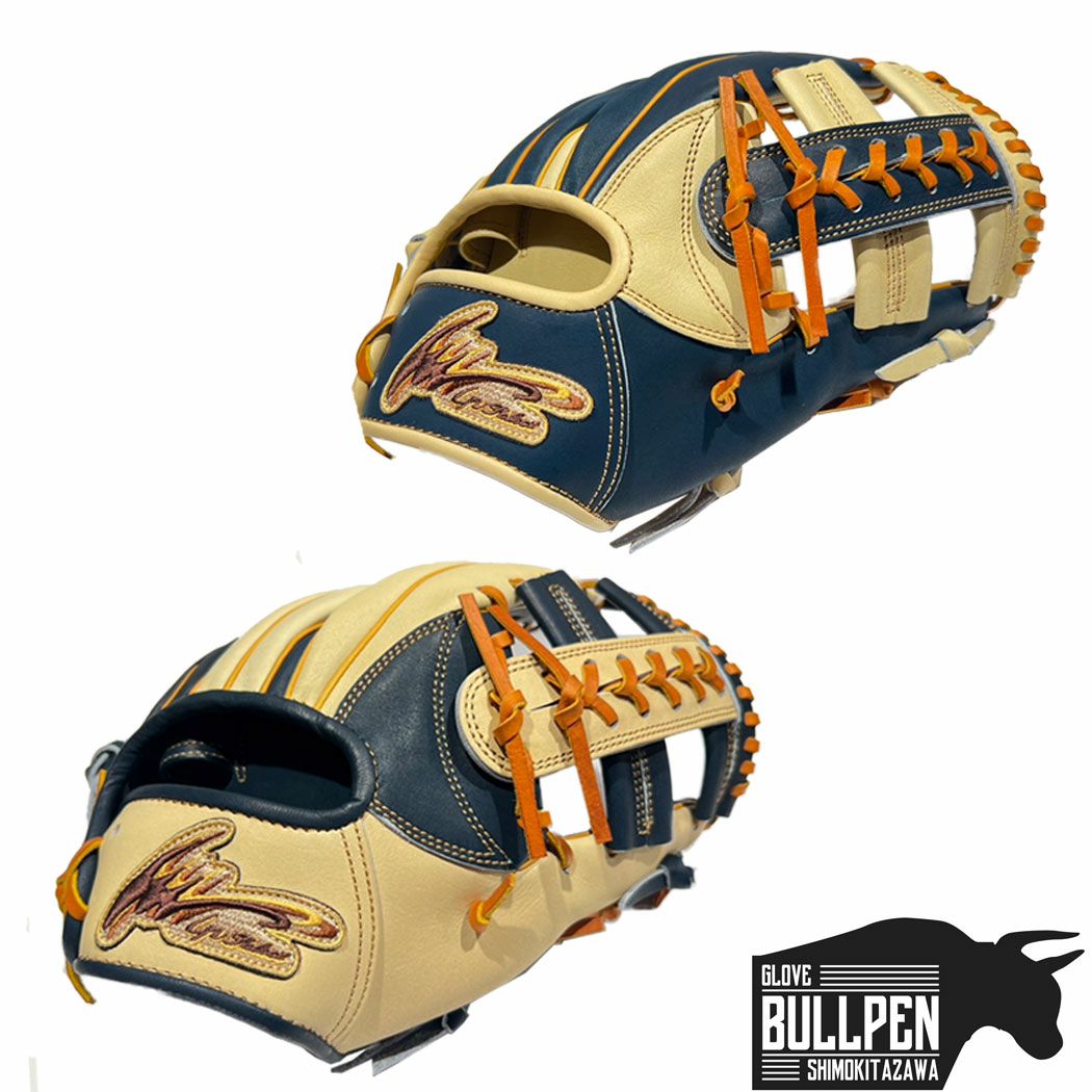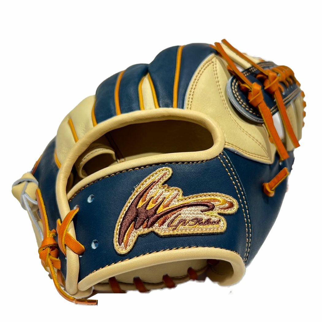 野球 硬式 グローブ ジュンケイグラブ JUNKEI-GLOVE 【専用グラブ袋付き】マリオオリジナル アラミドシリーズ 硬式用グラブ 内野手用 JG-593型 28.7cm 一般 KOIAI×マロン クロス8 ブルー オレンジ 野球 硬式 グローブ 内野手 マリオリ MOGKJ24-JG593AKM