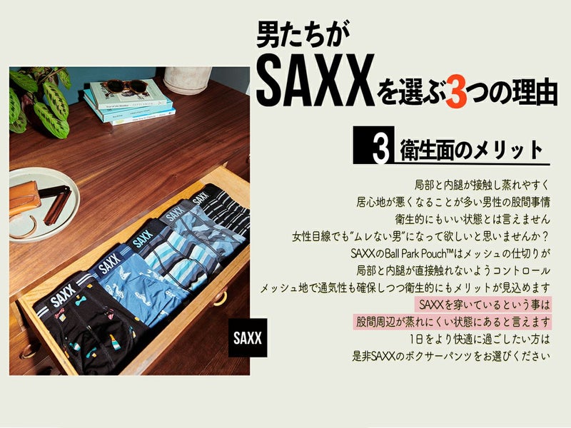 VIBEは、SAXXで最も豊富な種類のプリントと、特許取得済みのBallPark Pouch(TM)技術を採用しており、どんな気分にも合う一足が見つかります。