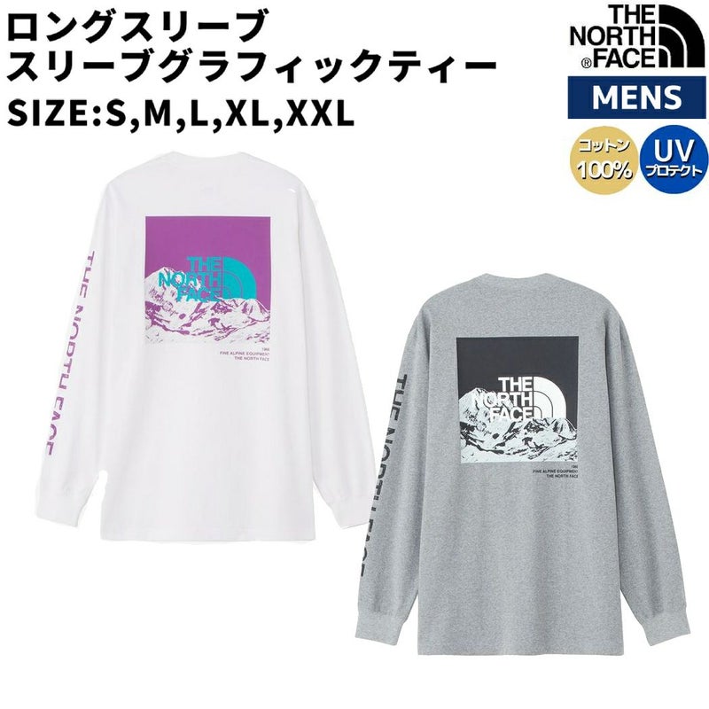 ザ・ノース・フェイス THE NORTH FACE 【正規取扱店】ロングスリーブスリーブグラフィックティー メンズ オールシーズン ロンT ホワイト白 グレー カジュアル シャツ Tシャツ 長袖 UVカット 綿100% NT32438 W Z