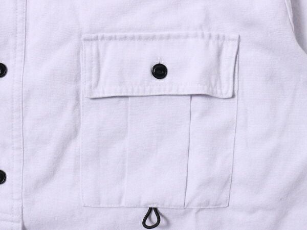 フロント下部分は比翼仕立てでプルオーバーに見えるギミック。