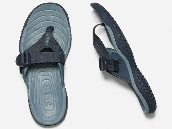 歩行時に求められる機能を考えて、アッパー甲部にバックルを採用したプレミアムフリップフロップ
