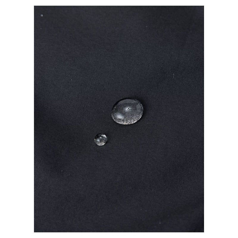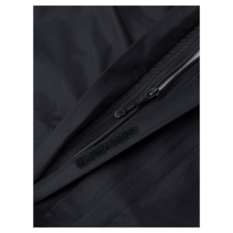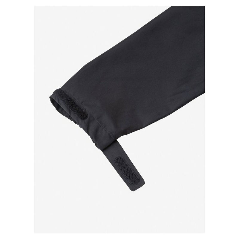 リサイクルポリエステルを使用した生地は、裏生地をなくし、メンブレンに特殊なコーティングを施した2.5層構造。適度な厚みを持ちつつも軽くしなやかです。環境に配慮し、フッ素化合物を使わないはっ水剤を採用しています。フロントは防水性の高いダブルフラップ仕様。フードはヘルメットの上からかぶることができるサイズ感で、襟元で調節が可能なワンハンドアジャスターを採用しています。携行に便利なスタッフサック付き。