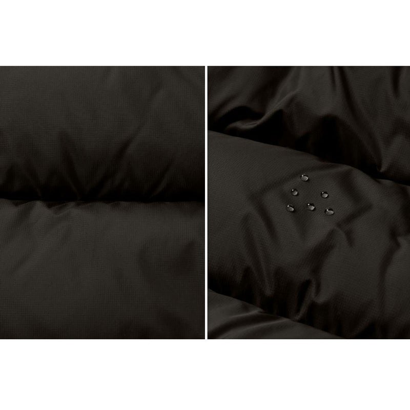 表地は強度がある40デニールのリップストップナイロンにはっ水加工を施し、肩切り替え部分は厚手のナイロン素材に切り替えています。
