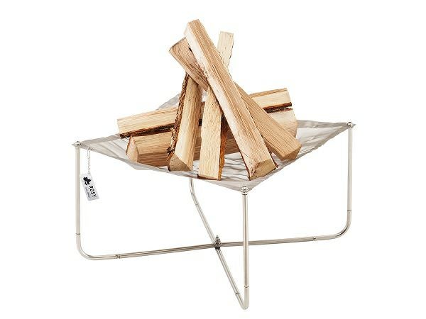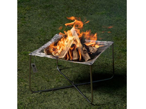 網目が薪と灰をキャッチし、空気が通るので火がつきやすい、軽くてスマートなたき火台です。