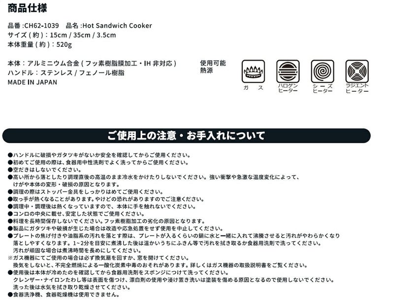 大人気!ホットサンドイッチクッカー!