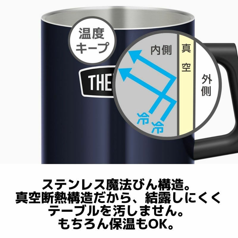 おいしさ長持ち!アウトドア仕様ステンレス製魔法びん構造のマグカップ