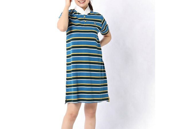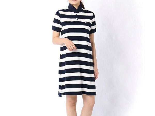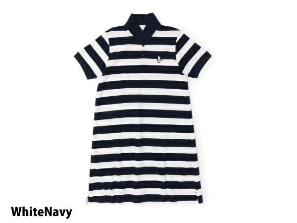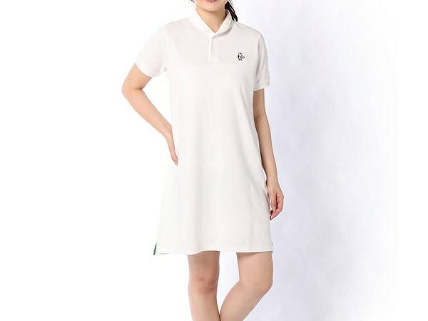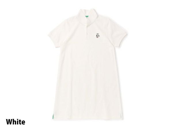 胸元にブービーバードの刺繍が施されている、CHUMSの定番ポロシャツワンピース(ショールカラー)。