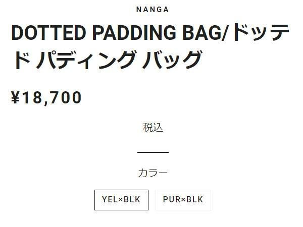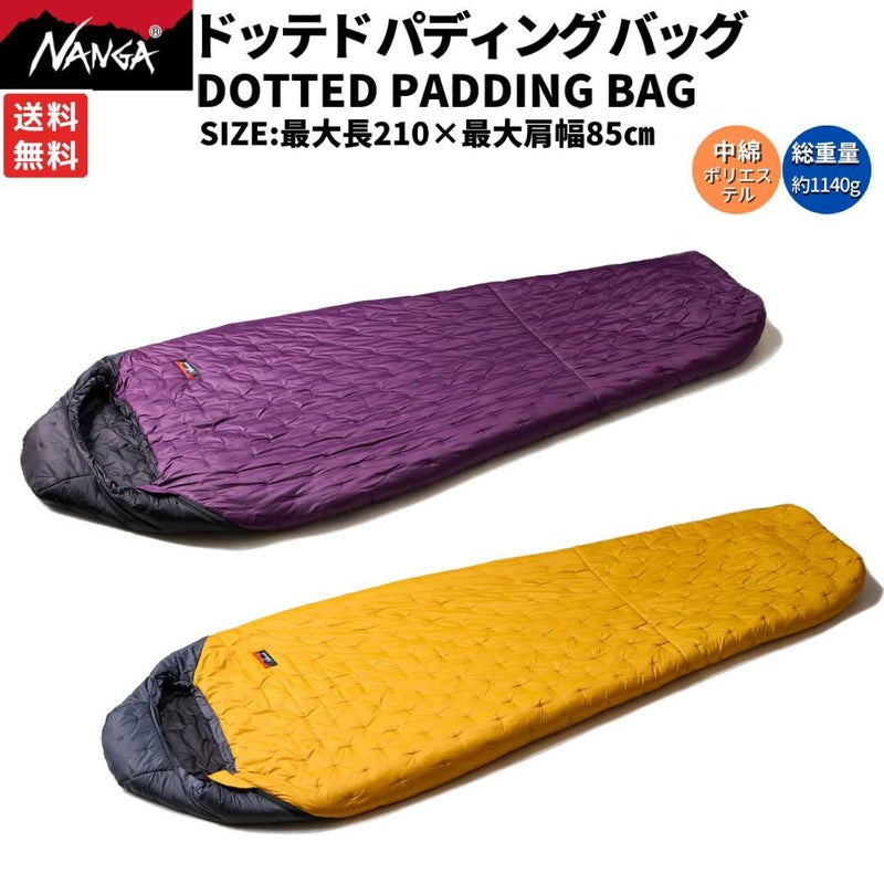 【30%OFF】 ナンガ NANGA DOTTED PADDING BAG ドッテド パディング バッグ 春 夏 パープル/ブラック イエロー/グレー 登山 アウトドア トレイル 小物 キャンプ用品 寝袋 N1DIPK14 N1DIYY14