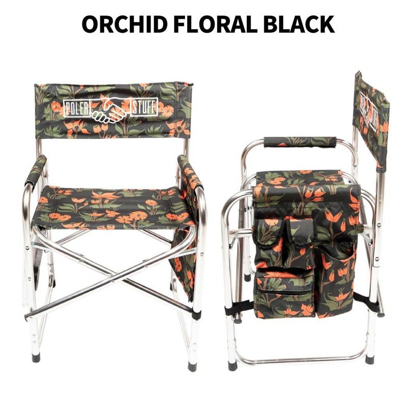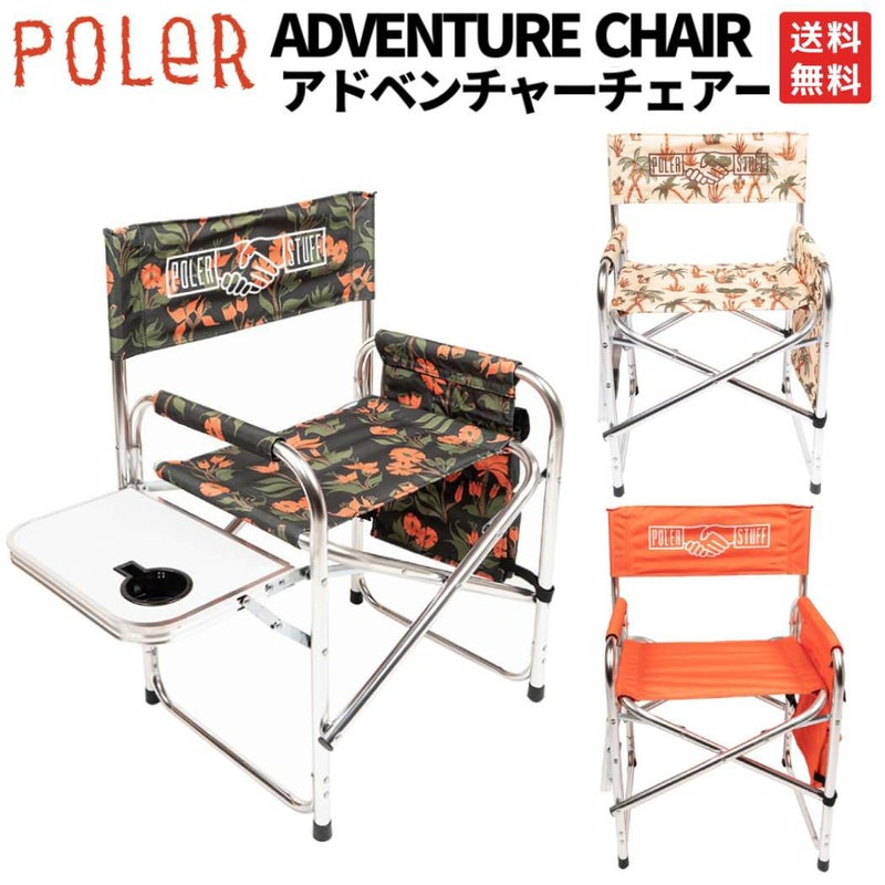 【60%OFF】 ポーラー POLeR ADVENTURE CHAIR アドベンチャーチェアー 折り畳み椅子 テーブル付 ブラック オレンジ ホワイト フラワー柄 ボタニカル柄 登山 アウトドア トレイル 小物 キャンプ用品 221EQU9801-ORCF TRRS ORG アウトレット セール