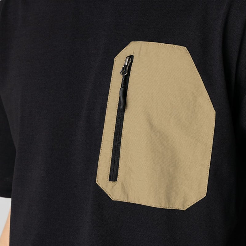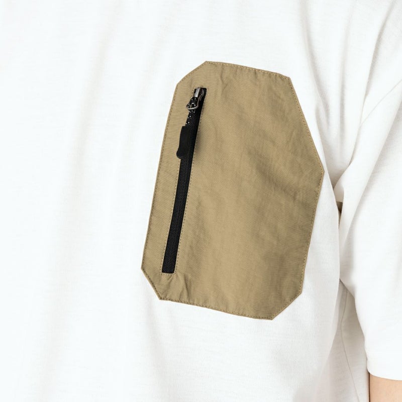 胸のナイロンポケットにはジップが付いており、鍵などを入れても安心です。