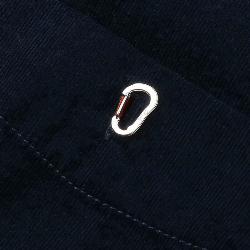 胸ポケットにはカラビナをモチーフとしたボタン付き。