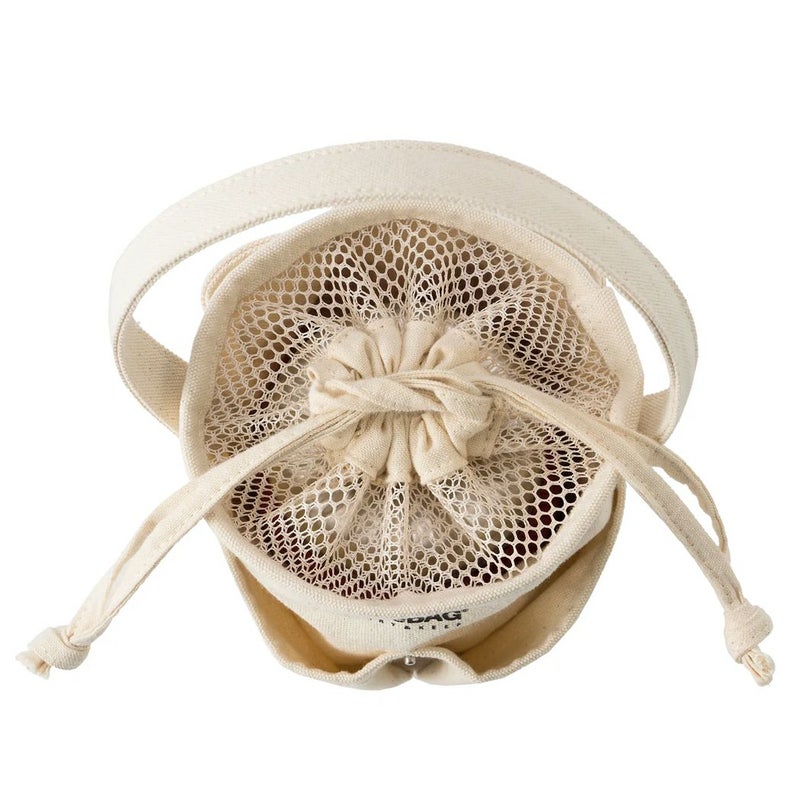 バッグの開閉部はメッシュの巾着になっていて、