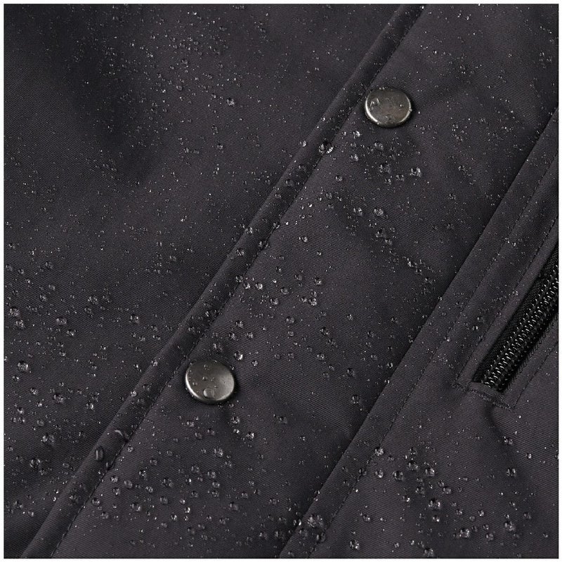 フルレングスのフロントジッパーは内側にチンガードと外側にスナップ留めのストームフラップ付き。