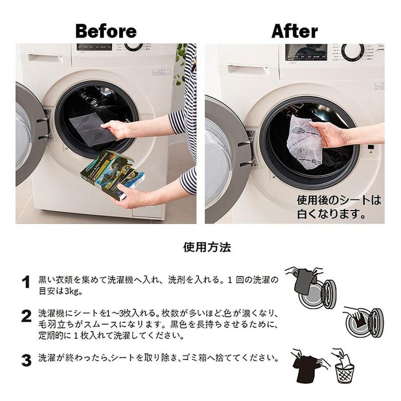 黒い物を集めて、黒復活シートを入れていつも通りにお洗濯するだけで