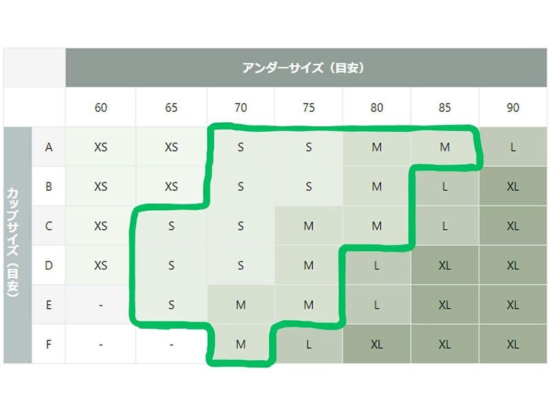 ※アンダーサイズとカップサイズは画像のサイズ表をご覧ください。