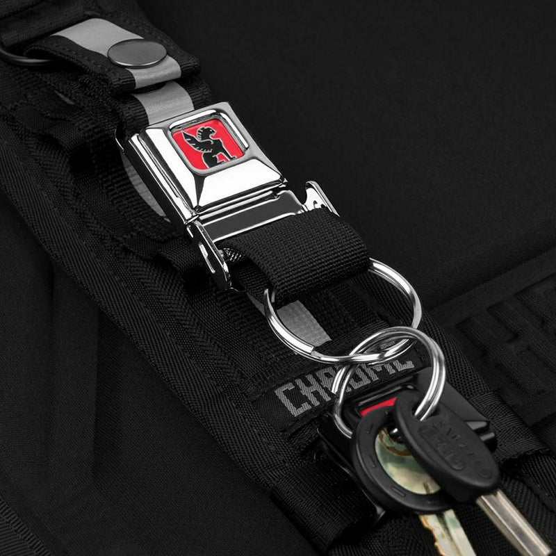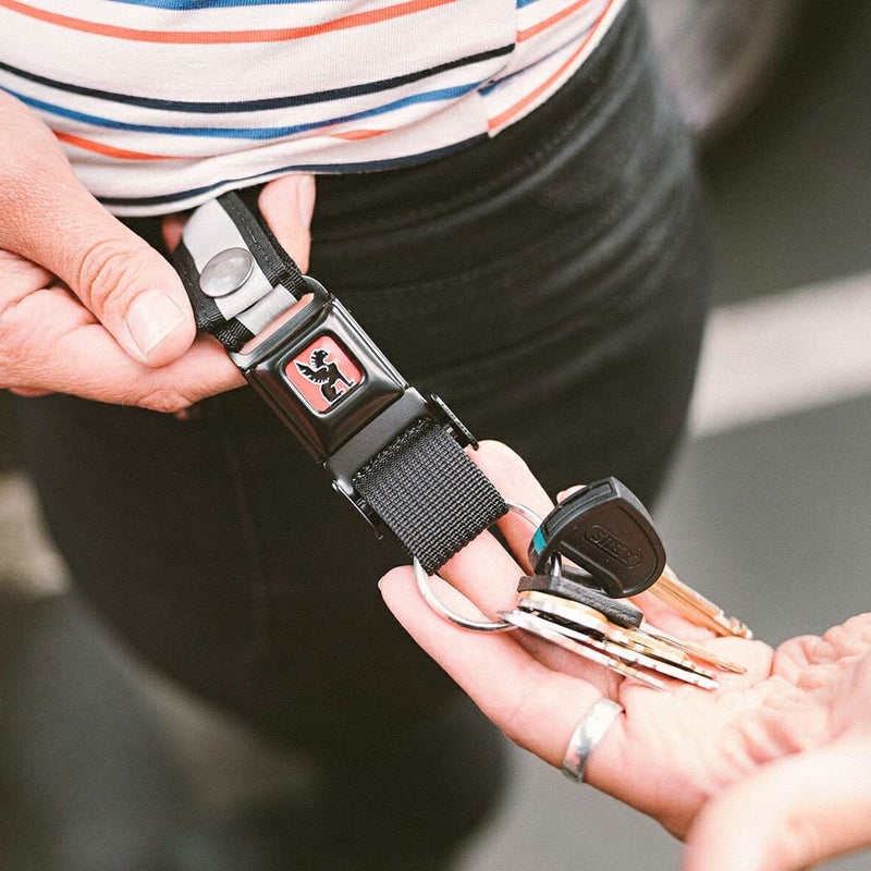 定番のシートベルトバックルを小型化したクイックリリースのキーチェーン。