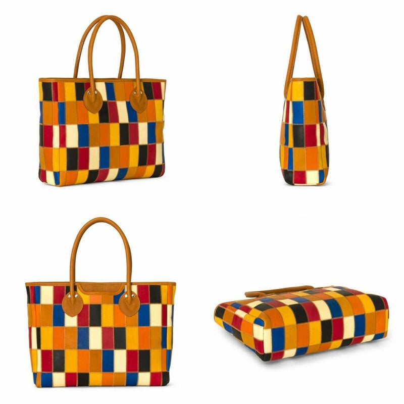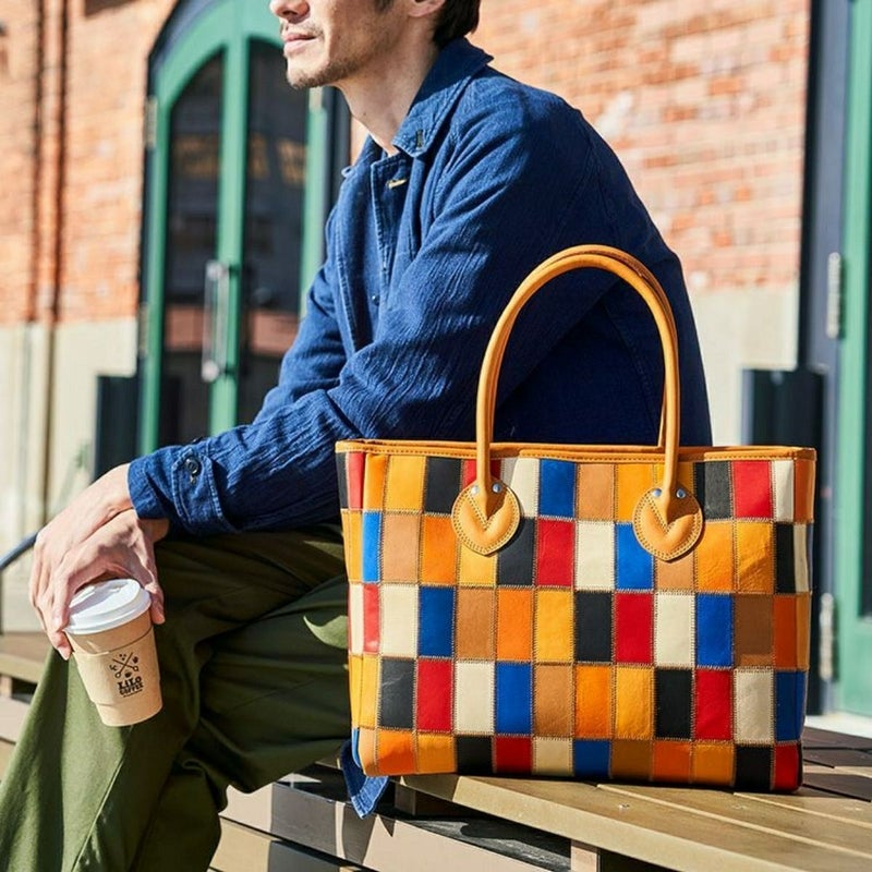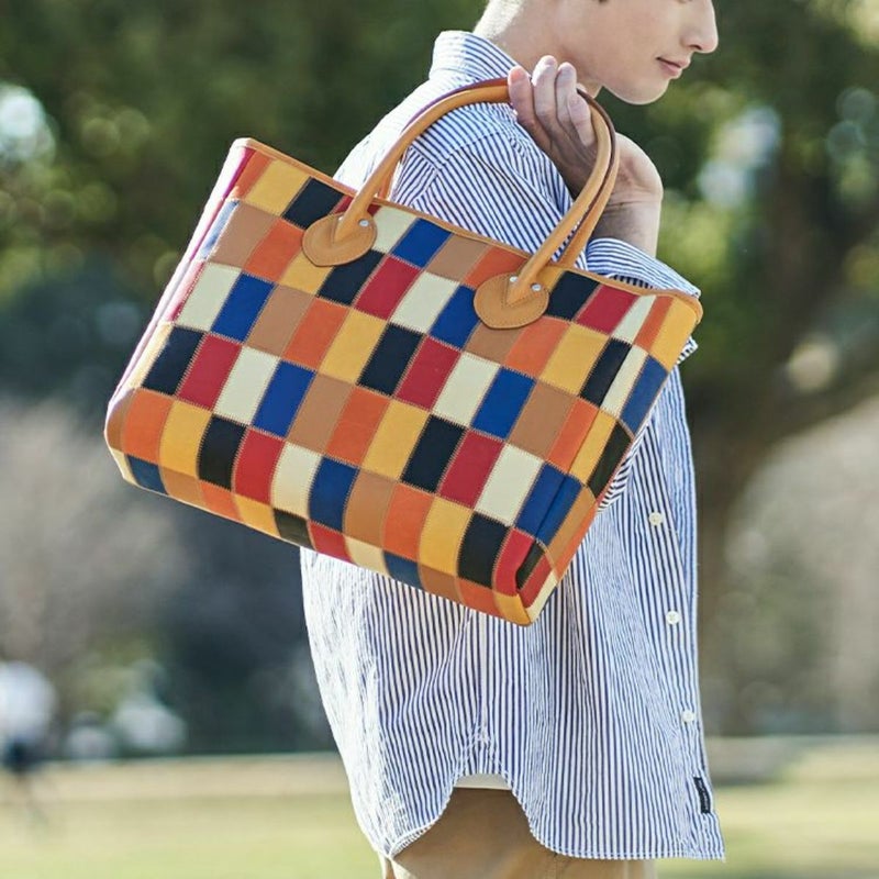 定番の横型レザートート。使うたび気分が上がる、7色もの色の組み合わせ。