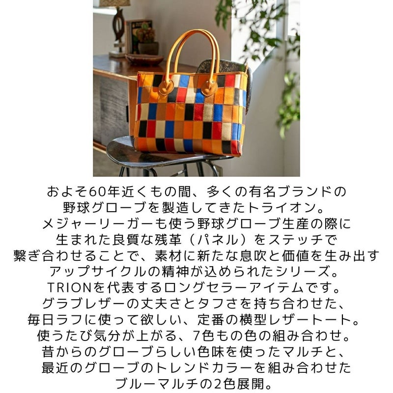 カジュアル バッグ トライオン TRION PANELシリーズ トートバッグ メンズ レディース ユニセックス 横型 A4 マルチカラー ビジネス ビジカジ オフィス バッグ 手掲げバッグ 職場 通勤 通学 PC収納可能 パッチワーク 野球 グラブレザー 革 本革 DPC260M