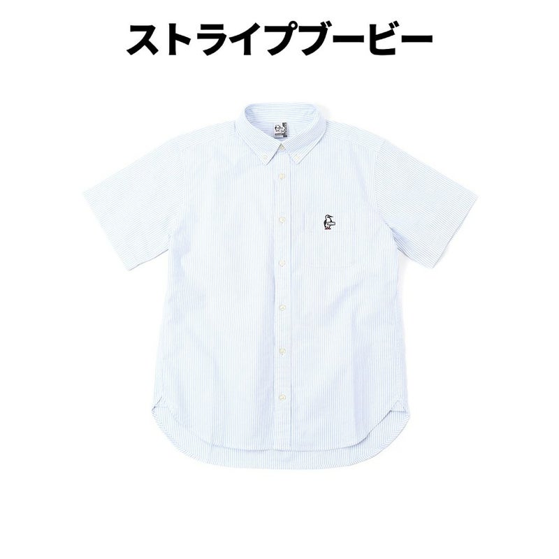ベーシックなボタンダウンの半袖シャツ。ややゆとりを持たせたボックスシルエットで、 胸ポケットに配したロゴ刺繍が着こなしのアクセントに。刺繍は〈CHUMSロゴ〉と〈ブービーロゴ〉、チャムスの起源である〈リテイナーとサングラス〉のモチーフの3パターンで、それぞれホワイト、ブルー、ストライプの3色展開。ベーシックでトレンド問わず、長く愛用していただけるひと品。