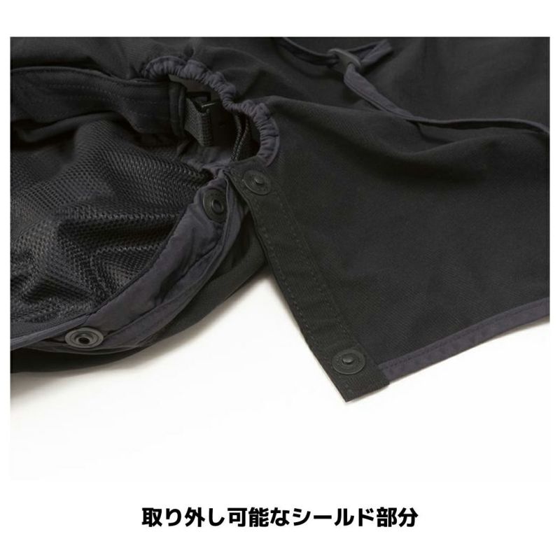 スナップボタンで簡単に取り外しができるシールド部は、首周りの日焼け対策に効果的です。