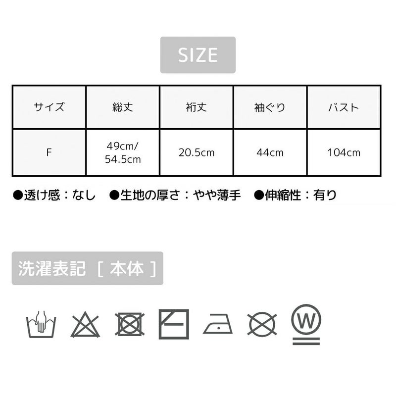 F/総丈:約49cm、約54.5cm 裄丈:約20.5cm 袖ぐり:約44cm バスト:約104cm