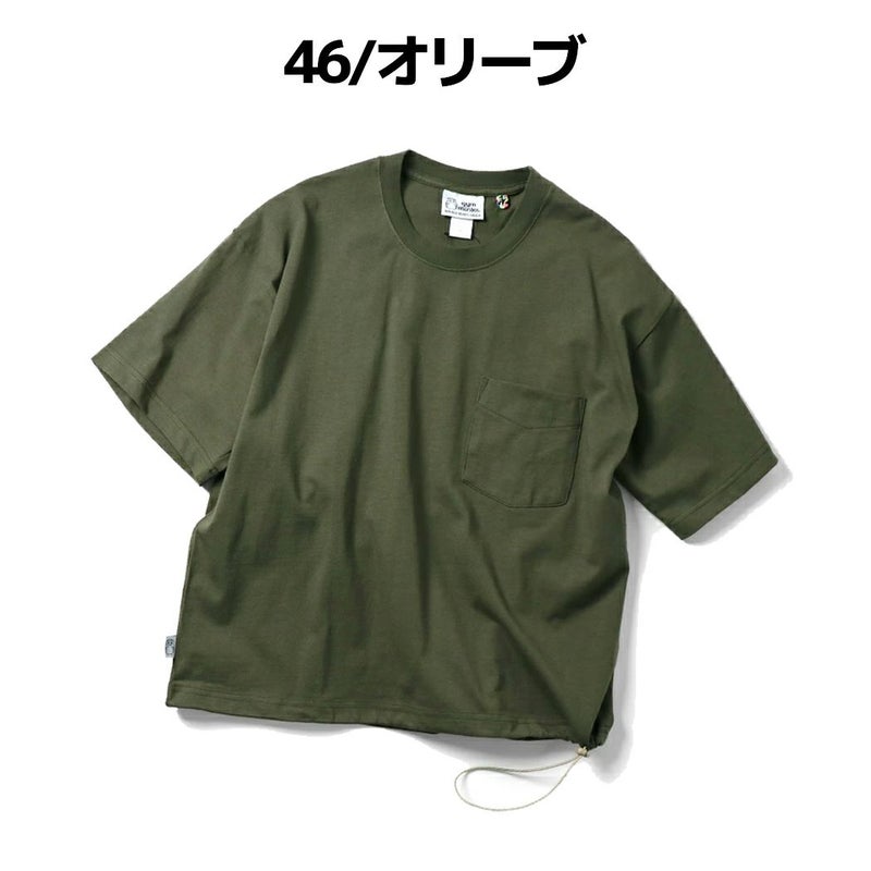 シンプルなポケットTEEは、ワイドかつビッグシルエット。