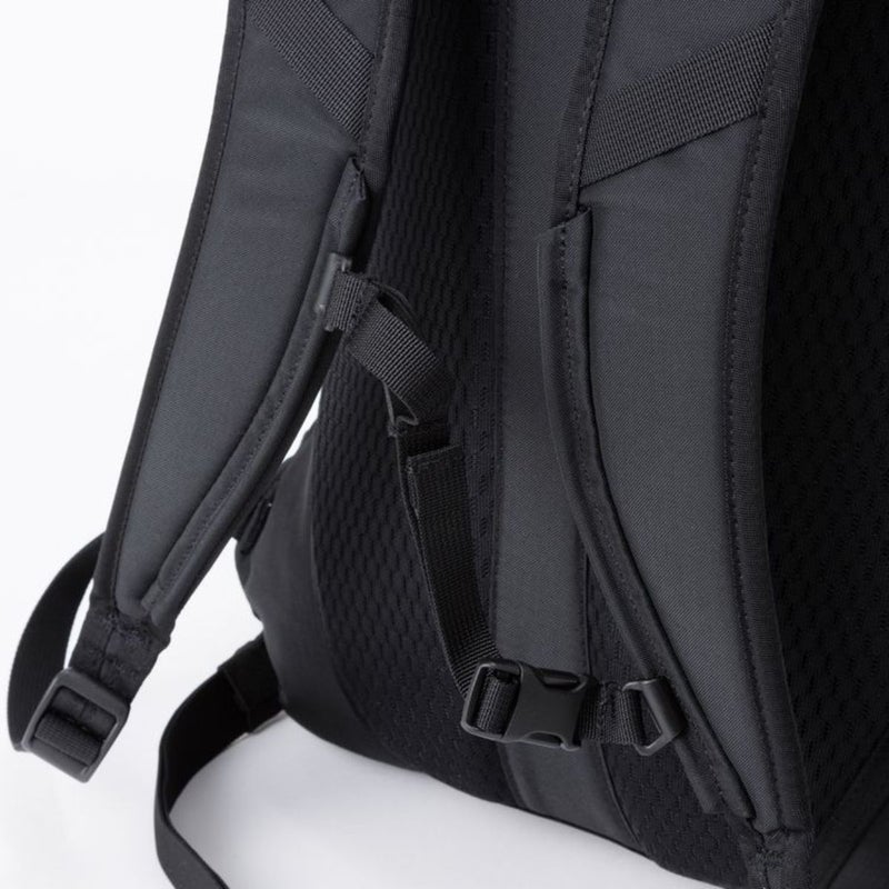 アウトドアフィールドにも対応できる生地強度を持ち、背面にはムレにくいメッシュバックパネルを採用。