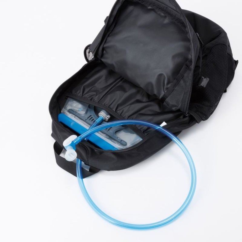 チェストベルトや、サイドのボトルポケットに収納可能なウエストベルトが付いており、フィット感を調節できます。