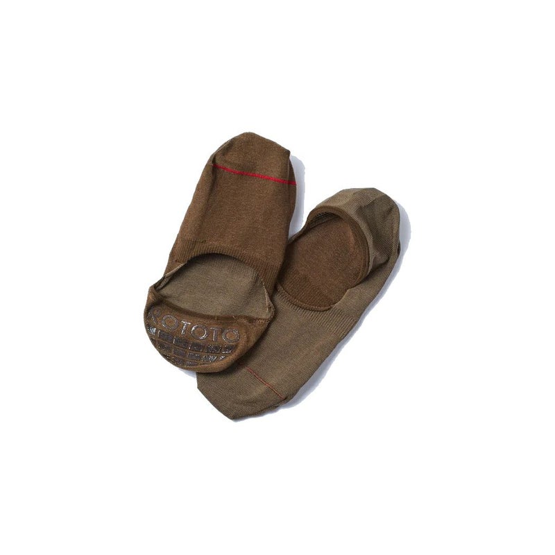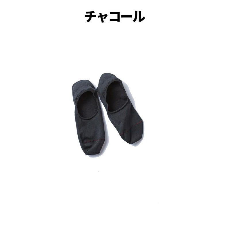サラリとした肌あたりのいいコットン糸を使用。かかとの内側に滑り止めのヒールグリップを付けるなど、脱げにくい仕様にこだわって職人と作り上げたフットカバー。構造上低速で編む必要があり、実は1時間に編めるのはたった45足。つま先(赤い部分)を上下の編み目を一目一目合わせてフラットに縫う、リンキングと呼ばれる技術で仕上げることで、履いたときのゴロつきも無くしています。